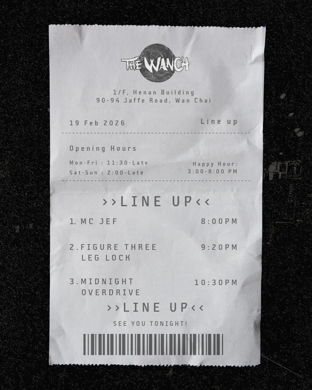 THURSDAY THROWDOWN at The Wanch! Join us for a night of high-energy rock: MC Jef at 8:00 PM, Figure Three Leg Lock at 9:20 PM, and Midnight Overdrive blasting off at 10:30 PM. Happy Hour from 3 …