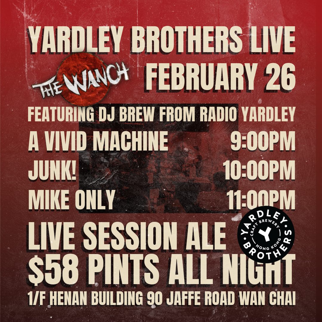 YARDLEY MUSIC LIVE at The Wanch! Thursday night stacked with talent: Hazel & The Harrows (7:00 PM), MC Jef (8:00 PM) with Yardley Music Live ft. DJ Brew, A Vivid Machine (9:00 PM), Junk! (10:00 PM), and Mike Only closing …