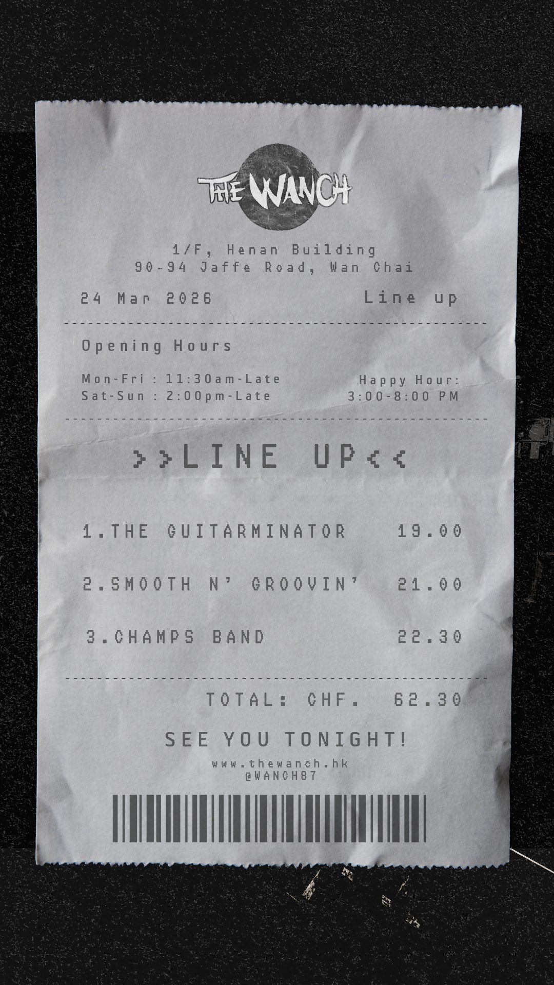 TUESDAY NIGHT at The Wanch! Tonight's lineup: The Guitarminator at 7:00 PM, Smooth N' Groovin' at 9:00 PM, and Champs Band closing at 10:30 PM. Happy Hour 3-8 PM—come early, grab a drink, and enjoy the …