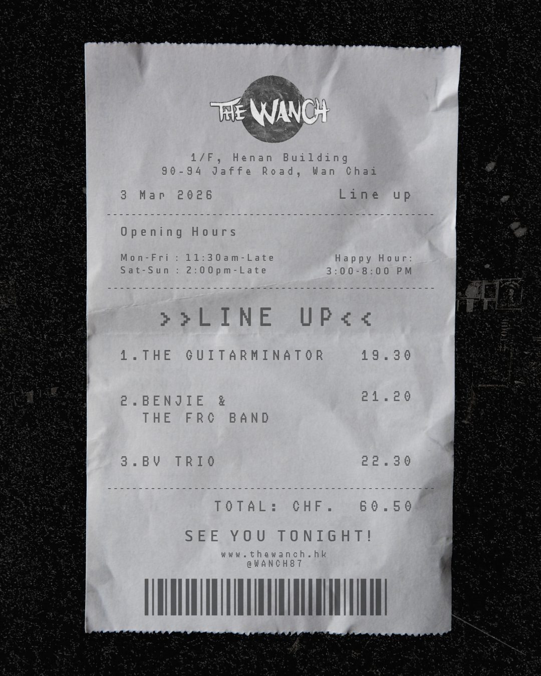 TUESDAY NIGHT at The Wanch! Tonight's lineup: The Guitarminator at 7:30 PM, Benjie & The FRC Band at 9:20 PM, and BV Trio closing at 10:30 PM. Happy Hour 3-8 PM—come early, grab a drink, and …