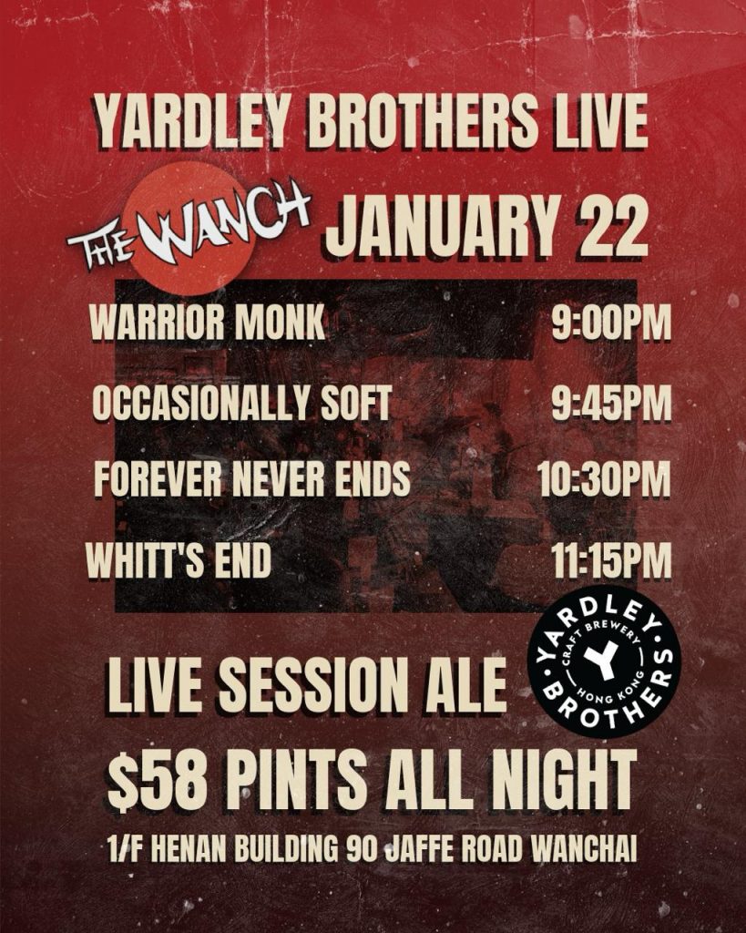 The music starts at 6pm with Acoustic Happy Hour featuring John w/ RE’CALL performing acoustic rock & folk favorites. 9pm Unfashionably Late performs 80’s & 90’s rock favorites. 10:30pm SR2 performs favorites from Deep Purple to AC/DC to Guns N Roses. Happy Hour is from 3pm till 8pm & our kitchen is serving our alacarte menu from 3pm till 9:40pm. We thank you for supporting The Wanch ^ the HK Music Scene.