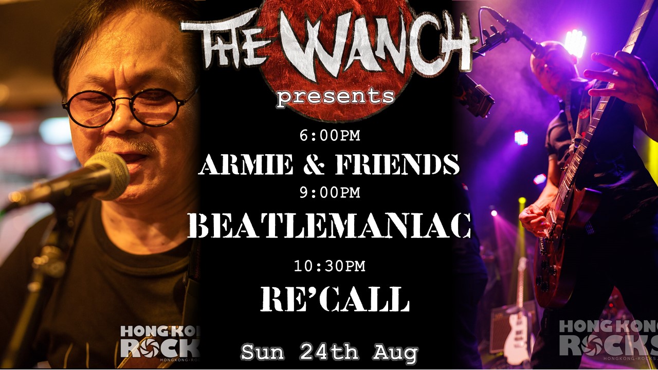 Get your dancing shoes ready as at 6pm Armie & Friends perform rock favorites from the 50’s, 60’s. & 70’s. 9pm Beatles Tribute Band Beatlemaniac performs your favorites from The Beatles. 10:30pm RE’CALL does a rare Sunday Night show performing favorites from Soundgarden, Pearl Jam, The Foo Fighters, Originals and other rock favorites. Happy our is from 2pm till 8pm & our kitchen staff is serving our ala carte menu from 2:30pm till 9:40pm. No Cover Charge. All from HK’s Unofficial Home Of Live Music… The Wanch