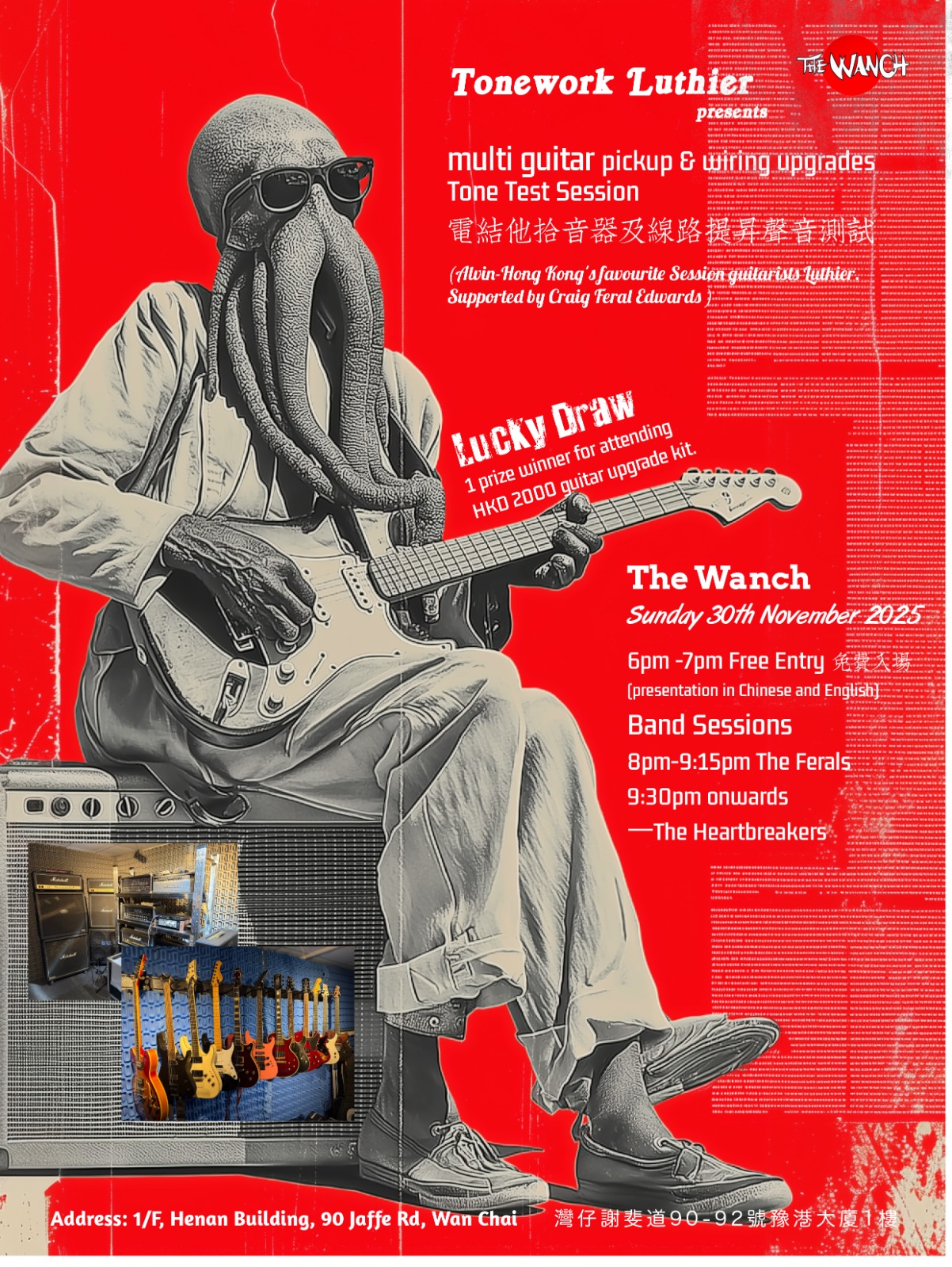 Alvin one of HK’s guitarists favorite luthier’s will be giving a workshop on guitar pickups. wiring and tone upgrades. The session is in English & Cantonese. There will be a lucky draw of a $2000 guitar upgrade kit. So if you’re wanting to learn more about your guitar & its working don’t miss this session