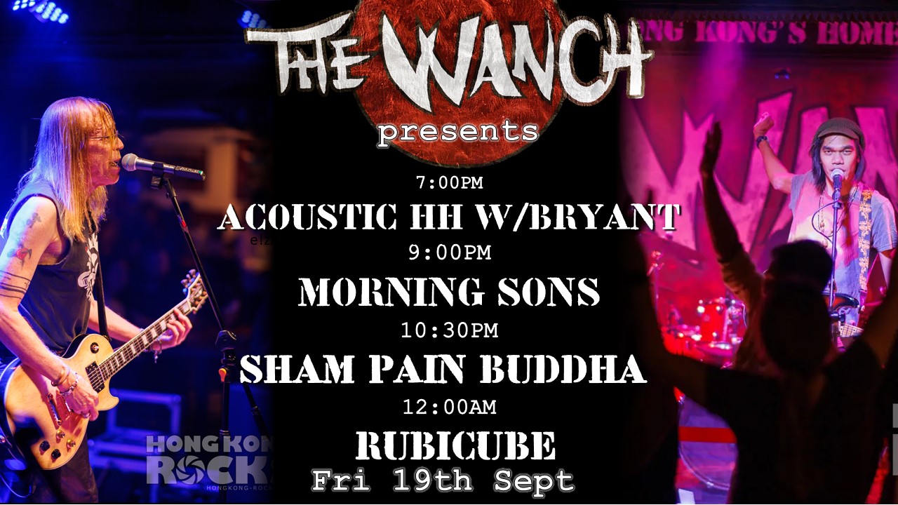 The Wanch kicks of your Friday starting at 7pm with Acoustic Happy Hour featuring Bryant performing acoustic favorites and originals. 9pm Morning Sons perform favorites from Oasis, The Beatles, Originals, and other rock favorites. 10:30pm Sham Pain Buddha performs favorites from The Who, Led Zeppelin, Weezer, ZZ Top, Rush and other rock favorites. 12am Rubicube performs favorites from Aerosmith, Green Day, The Foo Fighters, Originals, and other rock favorites. Happy Hour is from 3pm till 8pm & oir kitchen staff is serving our ala carte menu from 3pm till 10:40pm. No Cover Charge. All from HK’s Home Of Live Music…The Wanch