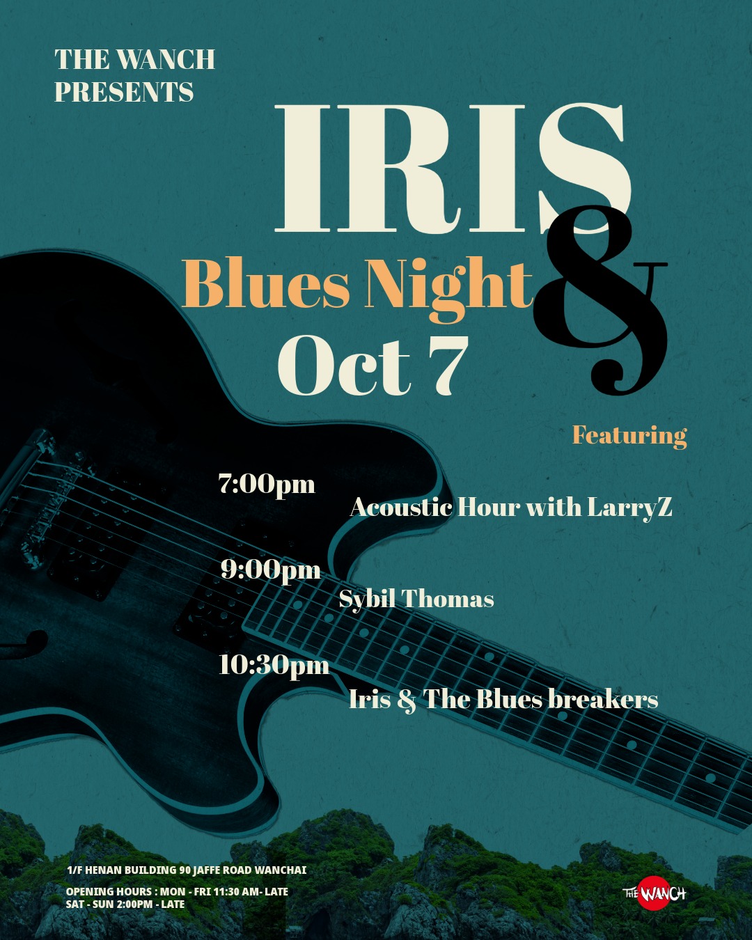 7pm Acoustic Happy Hour Featuring LarryZ 9pm Iris Blues Night Special Guest Sybil Thomas & The Blues Boyzz 10:30pm Iris & The Blues Breakers