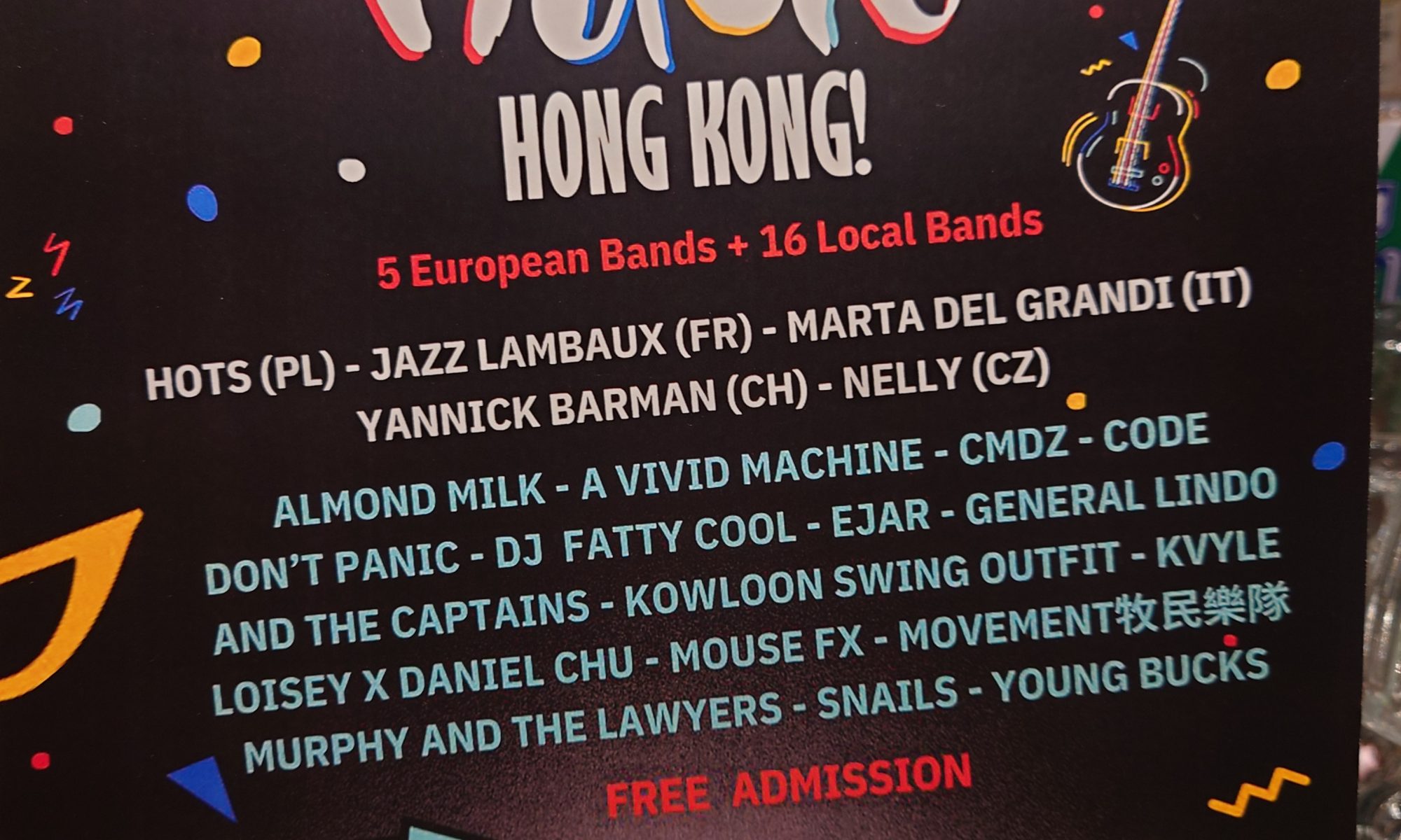 The Wanch & Alliance Francaise present Day 2 of Make Music HK. Music starts at 7:45pm with Marta Del Grandi (Italy), 8:30pm Yannick Barman (China), 9:15pm A Vivid Machine, 10:00pm Don’t Panic 10:45pm Movement 11:45pm General Lino & The Captains, 12:45am Murphy & The Lawyers. Happy Hour is till 8pm & our kitchen staff is serving our ala carte menu till 10:40pm. A full evening of local & international artists & No Cover Charge. See you tonight.