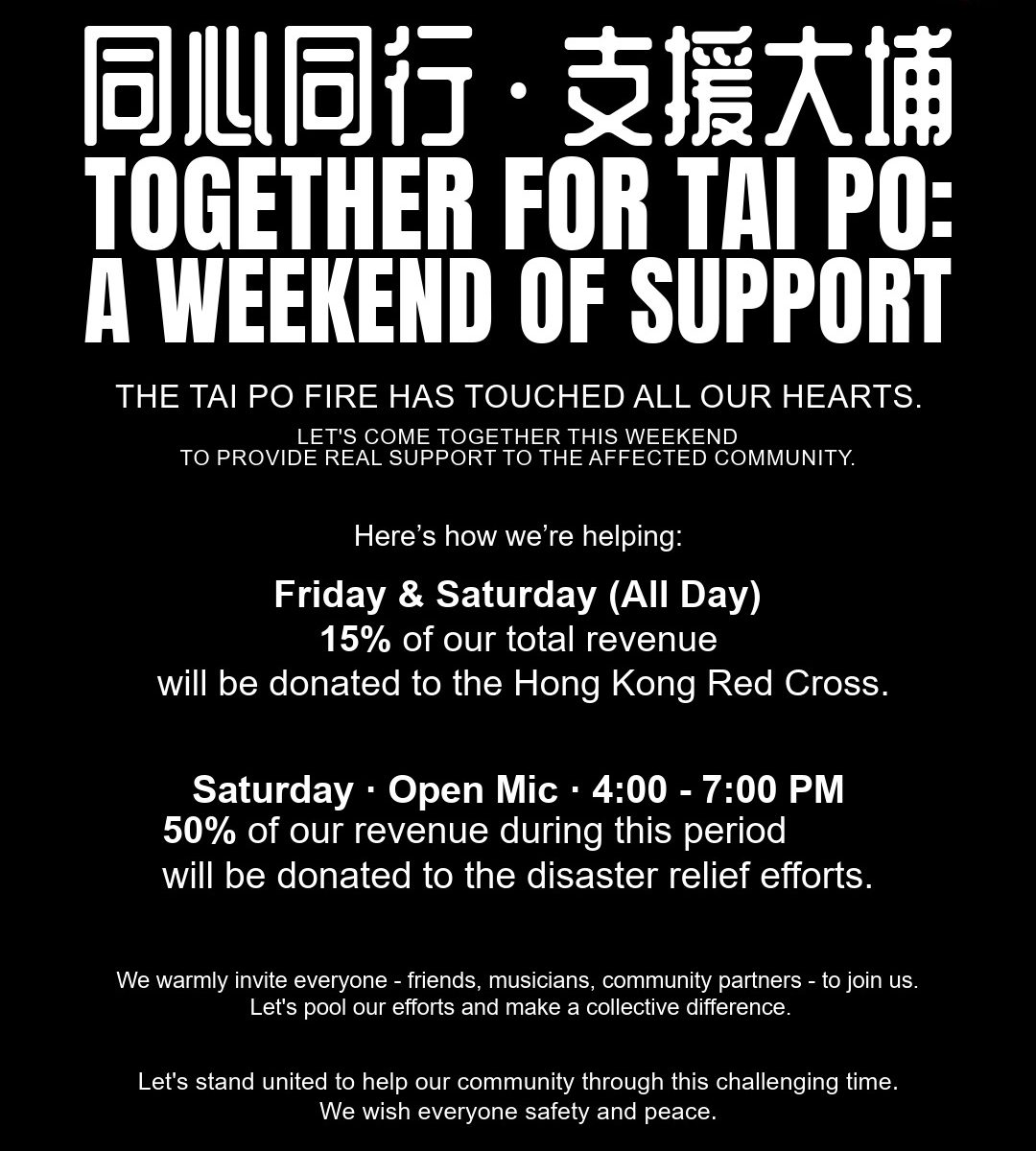 Together For Tai Po: A Weekend Of Support. All Day Friday & Saturday