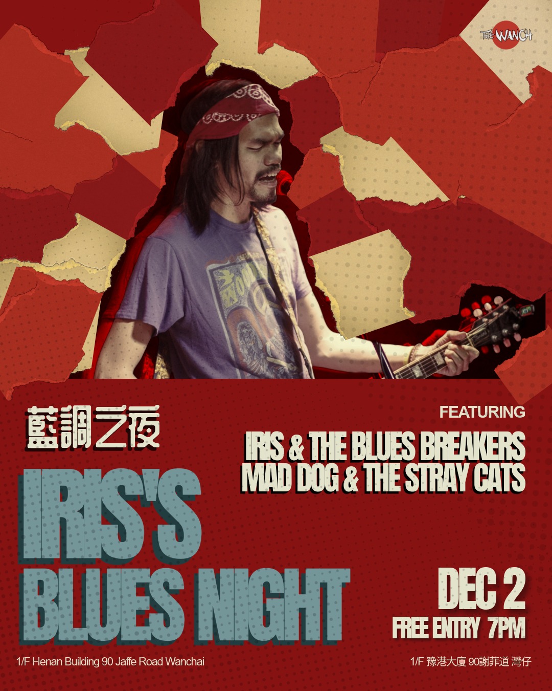 At 7pm the music starts with Acoustic Happy Hour featuring LarryZ performing acoustic rock favorites. 9pm Iris Blues Night starts with Special Guest Mad Dog & The Stray Cats performing classic blues standards. 10:30pm Iris & The Bluesbreakers keep the blues flowing with favorites from B.B. King, J.J. Cale, Jimi Hendrix, Eric Clapton, Stevie Ray …