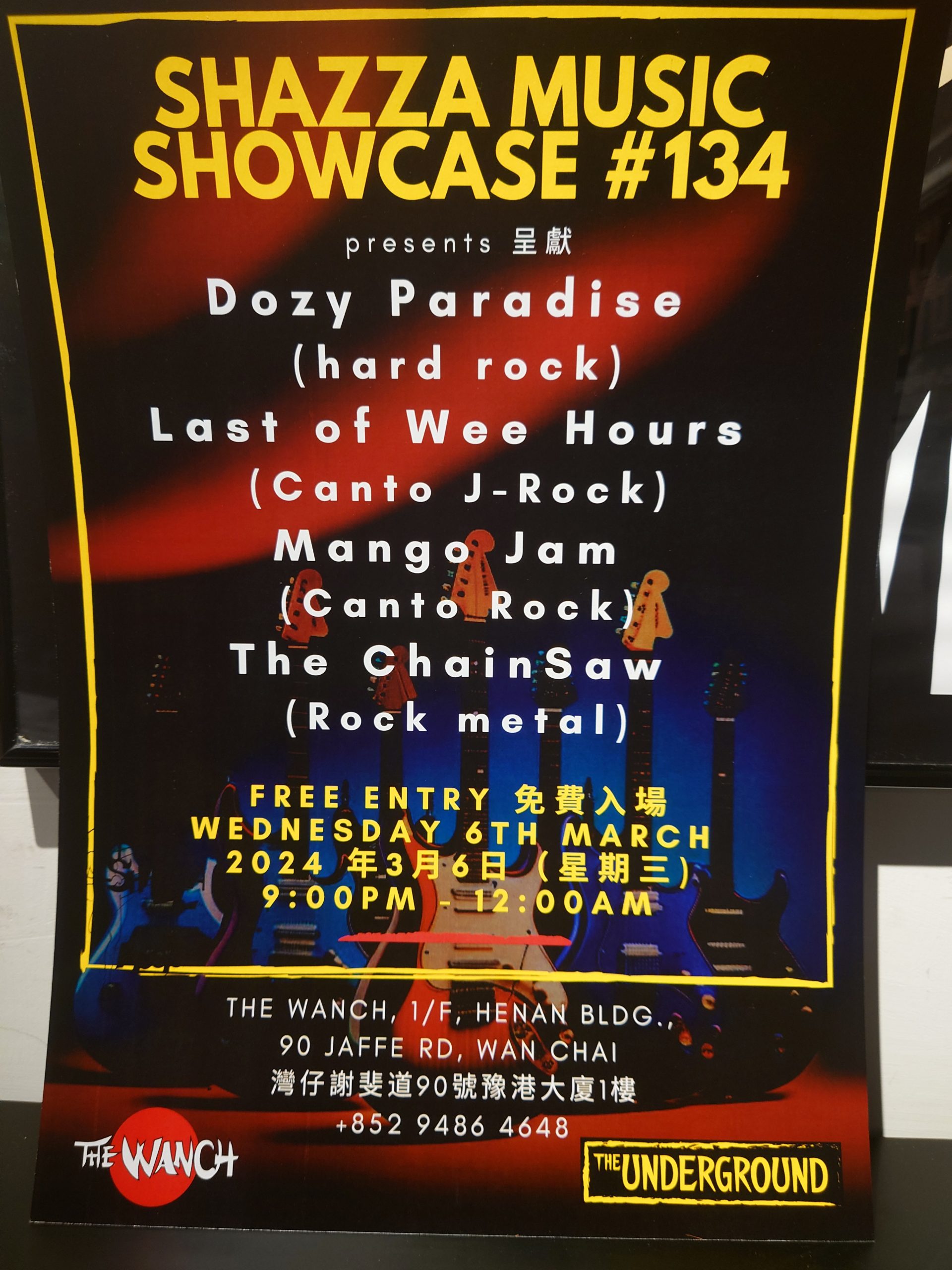 Wednesday night rocks at The Wanch starting at 6pm with Acoustic Happy Hour featuring Iris performing acoustic folk & rock favorites & some originals. 9pm The Shazza Music Showcase hosted by Chris B Features performances by Dosy Paradise (Hard Rock), Last Of The Wee Hours (Canto-J Rock), Mango Jam (Canto Rock), & The ChainSaw (Hard …