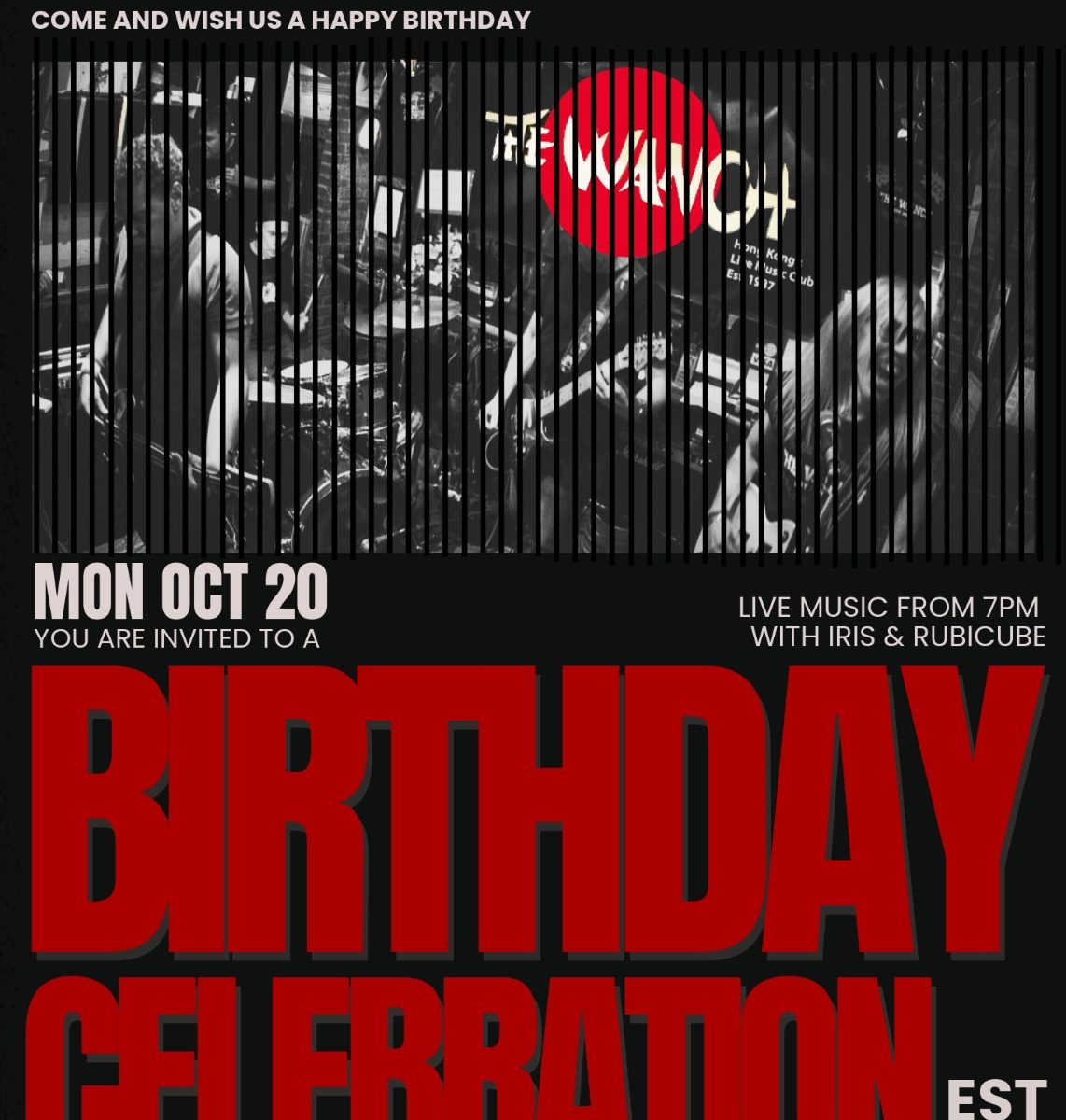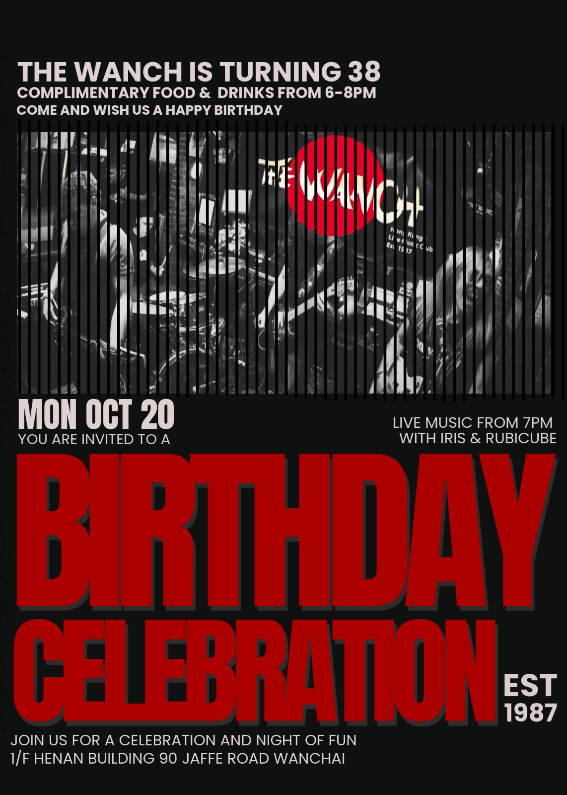 6pm Wanch Birthday Bash 38 Years of Rocking HK 9pm Open Jam Hosted by Iris & Rubicube