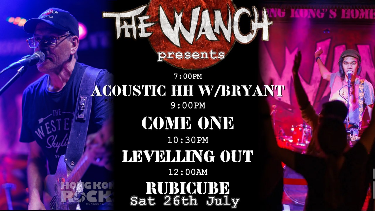 The Wanch kicks off your weekend at 7pm with Acoustic Happy Hour Featuring Bryant performing original and acoustic rock favorites. 9pm Come One performs classic rock favorites from The Beatles to Pink Floyd. 10:30pm Levelling Out performs favorites from B-52’s, INXS, The Doobie Brothers, ZZ Top and other rock favorites. 12am Rubicube performs favorites from The Foo Fighers, Aerosmith, The Beatles, Green Day, Originals, and other rock favorites. Happy Hour is from 3pm till 8pm & our kitchen staff is serving our ala carte menu from 3pm till 10:40pm & No Cover Charge. All from The Wanch “Where Music Means Something.”
