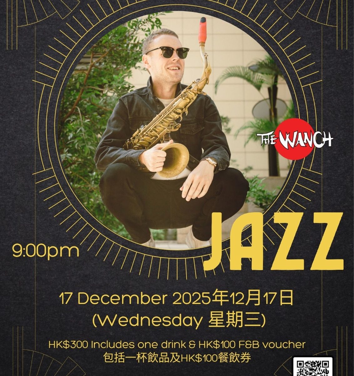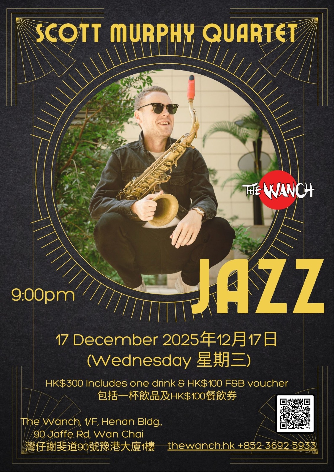 The music starts at 7pm with Acoustic Happy Hour featuring Iris erforming acoustic rock and originals. 9pm The Wanch Jazz Series features Sonic Alchemy: Scott Murphy’s Jazz Revolution. Advance tickets are $300 and available thru Eventbrite or Ticketflap or $350 at the door. All tickets inclued one free drink & a $100 food & beverage voucher. 10:30pm Gonzales Musika performs 70’s-90’s rock & originals. Happy Hour is from 3pm till 8pm & our kitchen staff is serving our ala carte menu from 3pm till 9:40pm. We thank you for supporting The Wanch & HK’s Live Music Scene.