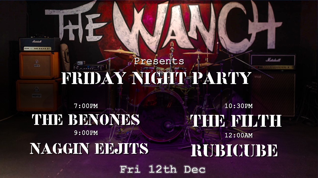 7pm Acoustic Happy Hour Featuring The Benones 9pm Naggin Eejits 10:30pm The Filth 12am Rubicube